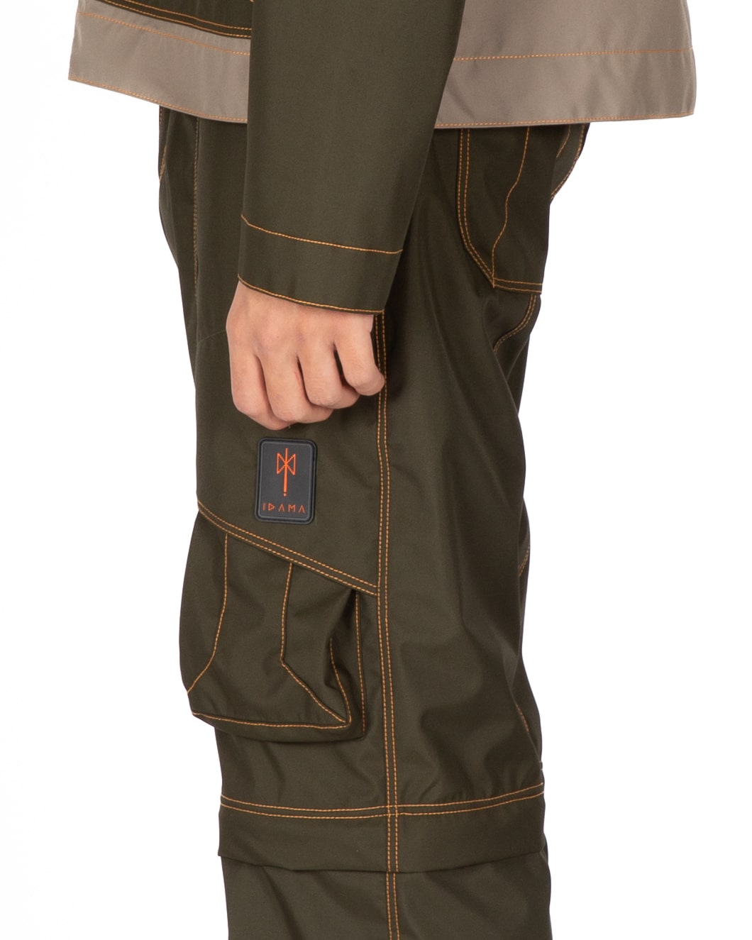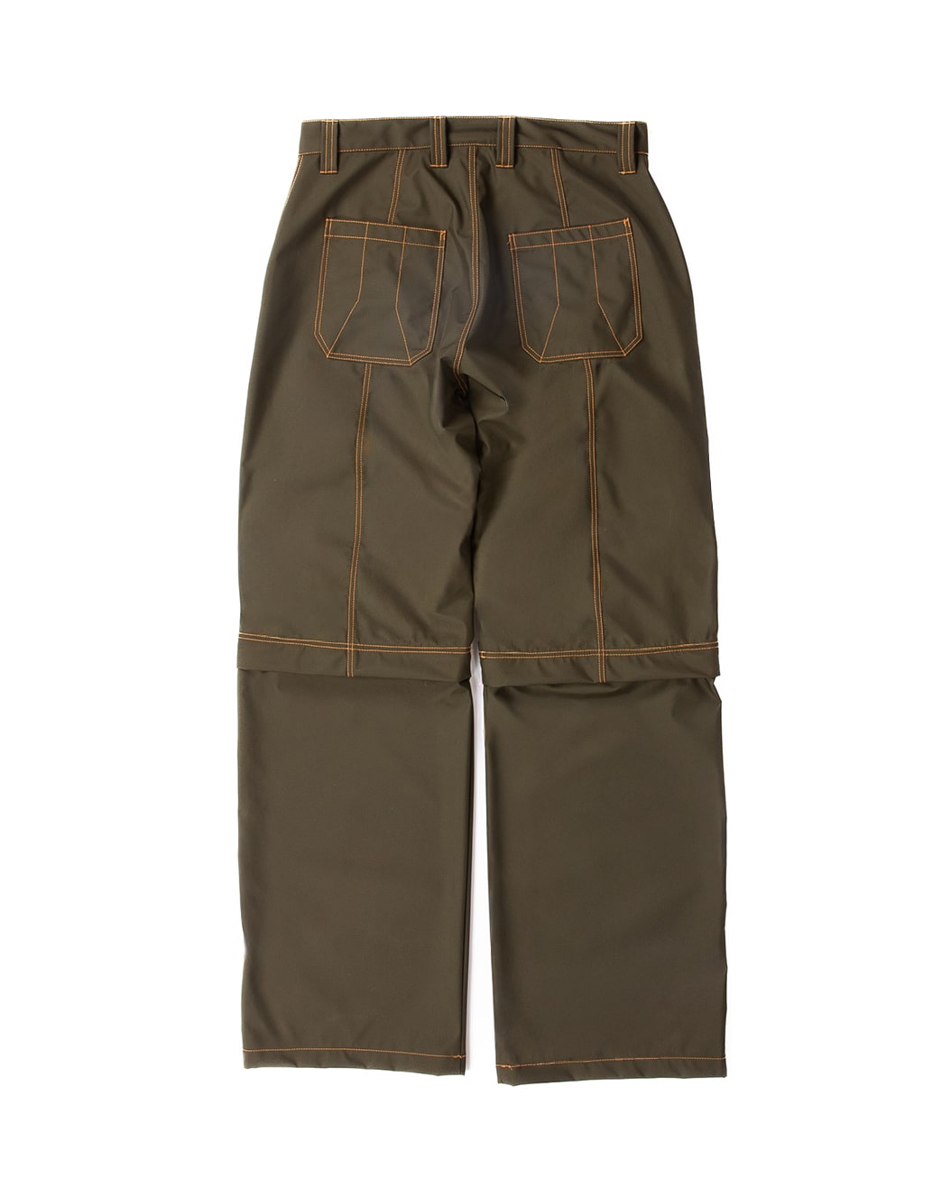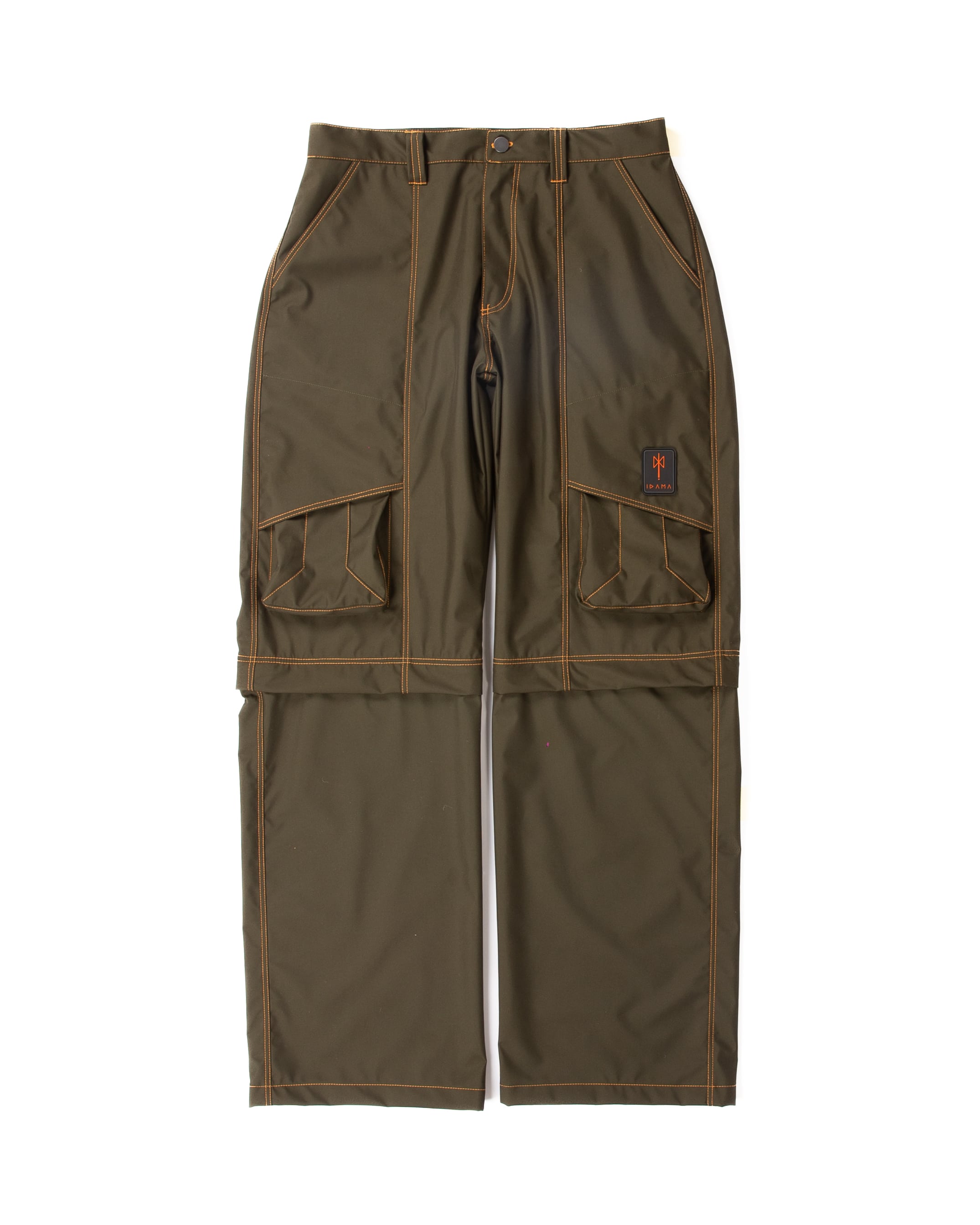 Pantaloni cargo oversize-fit, ispirati al military style, realizzata in gabardine riciclata densa con trattamento idrorepellente C-Zero a triplo strato (PFC-free). Design strutturato, per un mix di utilità contemporanea e stile urbano Con cuciture a contrasto e design versatile, la gamba è removibile tramite una cerniera, trasformando il capo in un pantaloncino tecnico.
