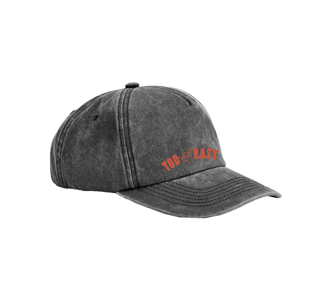 Cappello classico in cotone con finitura vintage-wash, stampa direct-to-film e cinturino regolabile sul retro.